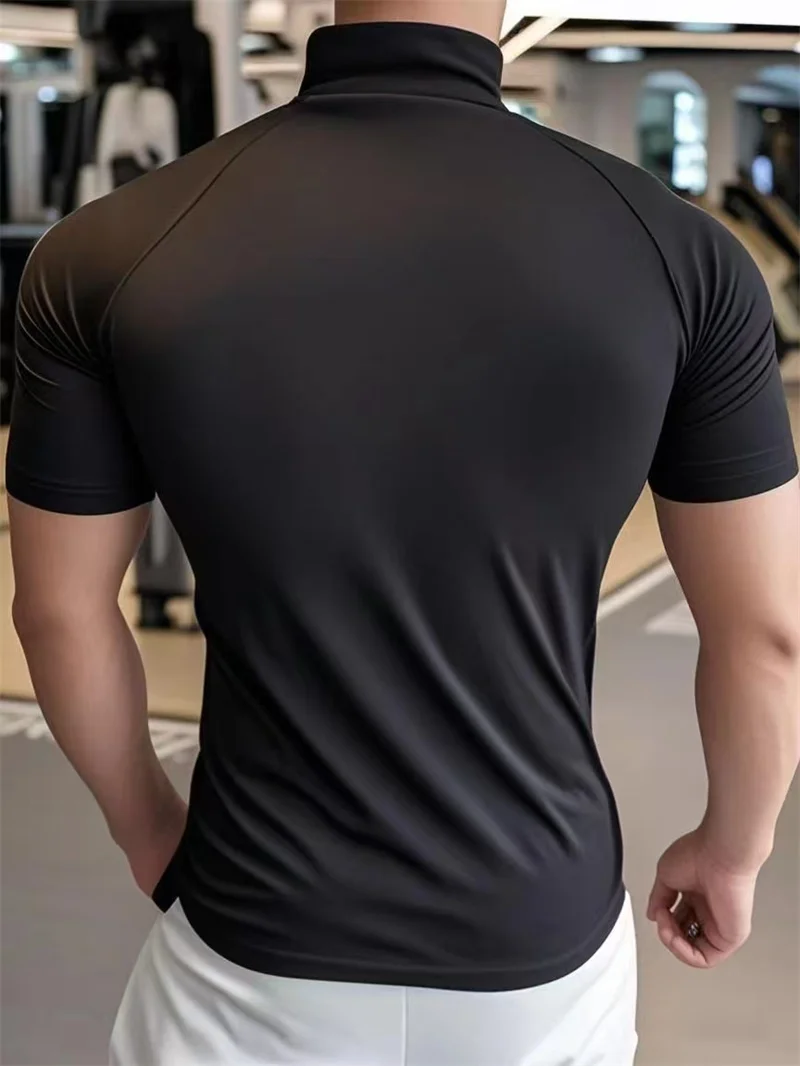 NEW Men's sports T-shirt Quick Dry Compression Running t Shirt Men Fitness short sleeve Shirt Zippered round neck Tights Tops